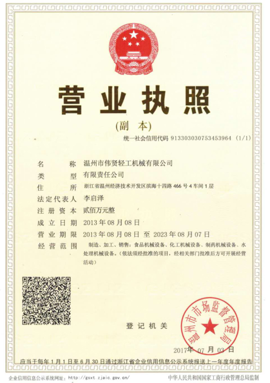 溫州市偉賢輕工機械有限公司 地址:浙江溫州濱海工業(yè)園區(qū)十四路466號 電話:0577-86374818 86899137 86899139 傳真:0577-86899138 手機/微信:13634277318 18858825318 QQ:243687277 郵箱:lzjxsb@163c.com 阿里旺鋪:lzjxsb.1688.com www.chinaweixian.com www.qykankan.com